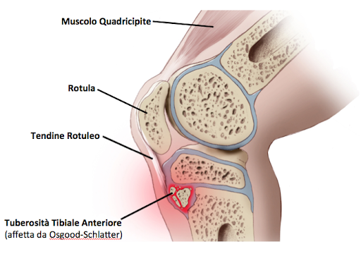 L’osteocondrosi è un processo degenerativo a carico delle ossa, che in questo caso colpisce l’apofisi tibiale anteriore, che è la tuberosità della tibia che si trova proprio sotto al ginocchio.